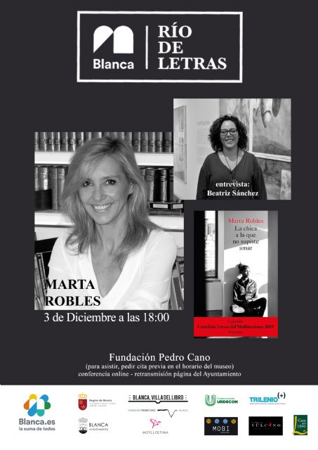 La periodista y escritora madrileña Marta Robles será la siguiente invitada del ciclo literario blanqueño 'Río de Letras'. Tras el paso de Ángeles Gónzalez-Sinde y Paul Pen, Marta presentará de manera virtual su novela "La chica a la que no supiste amar", un libro galardonado en 2019 con el Premio Narrativa Letras del Mediterráneo de la ciudad de Castellón, y que cuenta una historia basada en una peligrosa investigación que revelará una trama criminal de trata de mujeres de inusitada crueldad.