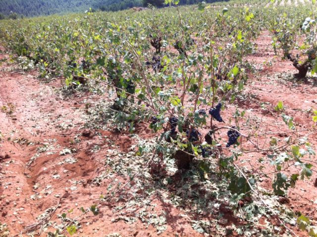 Las fuertes precipitaciones que cayeron ayer por la tarde en la comarca del noroeste y que vinieron acompañadas de piedra afectaron a gran parte de los viñedos de la zona delimitada por la D.O. Bullas.