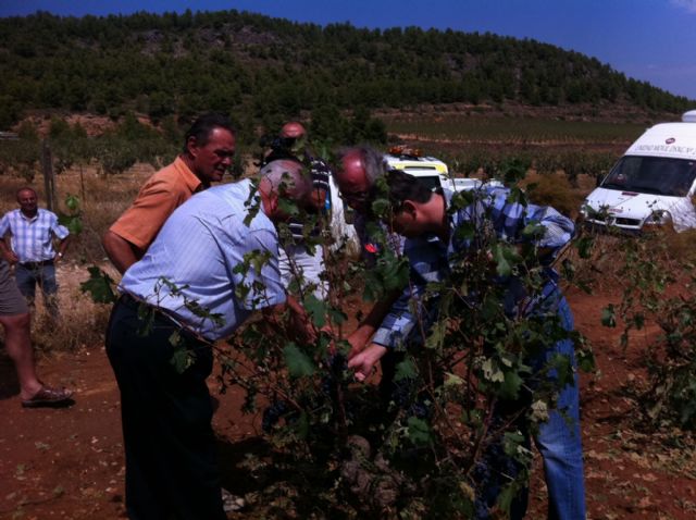 Esta mañana, Ángel García Lidon, Director General de Industria Agroalimentaria y Capacitación Agraria de la Consejería de Agricultura y Agua junto con el Alcalde de Bullas, Pedro Chico, y el Presidente de la D.O. Bullas, Francisco Carreño, han visitado una de las zonas más afectadas, 'La Venta del Pino'.