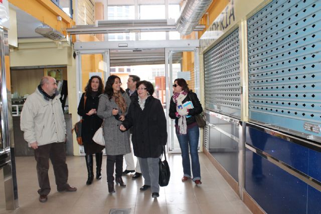 La Directora General de Consumo, Comercio y Artesanía, María Dolores Alarcón, ha visitado esta mañana junto al Alcalde de Bullas, Pedro Chico y el Concejal de Servicios, Francisco Martínez, el recién rehabilitado mercado de abastos del municipio.