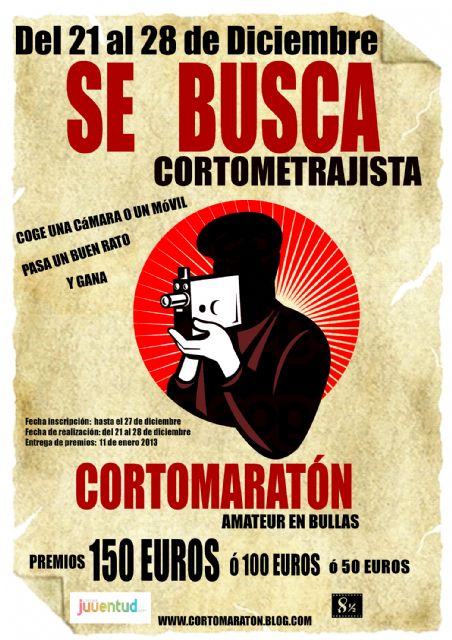 Tienes hasta el 27 de diciembre para inscribirte en el Informajoven y el día 11 de enero conoceremos el fallo de un jurado experto. Más información en www.cortomaraton.blog.com.
