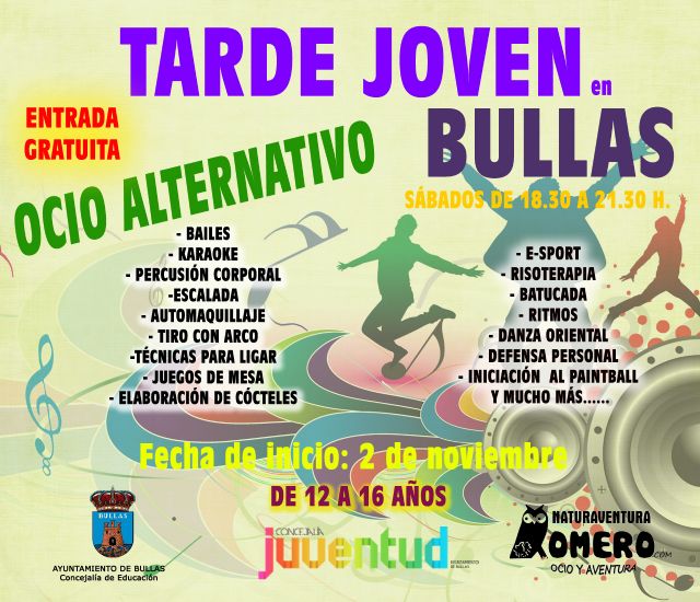 La Concejal de Cultura, Francisca Caballero, presentó ayer la actividad "Tarde Joven en Bullas" en un encuentro al que fueron invitados los padres y madres de hijos adolescentes, entre 11 a 16 años, rango de edades al que va dirigida esta actividad. Caballero la presentó como una alternativa de ocio a las tardes de los sábados de otoño, invierno y primavera desarrollándose en el Centro Joven "La Almazara".