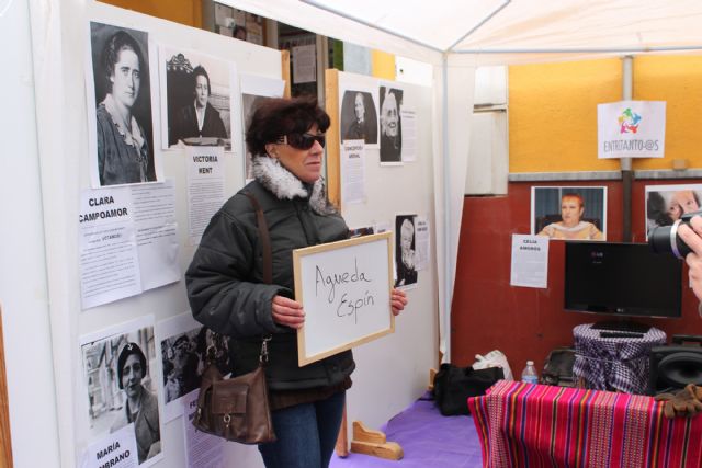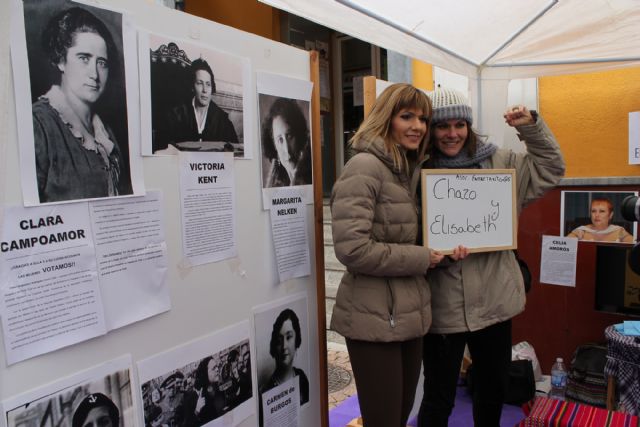 "Clara Campoamor, Isabel Coixet, Ana María Matute, Amaya Valdemoro, Ana Pastor y un largo etcétera, todas mujeres de ayer y de hoy del panorama general español, ya que hay directoras de cine, escritoras, deportistas, científicas, periodistas, y demás, que de una forma u otra han luchado por reivindicar los derechos y libertades de todas las mujeres" apuntan desde la Asociación que esta mañana en el entorno de la Plaza de Abastos, durante el mercado semanal, paraban a los vecinos y vecinas de Bullas para que pasarán por su stand y conocieran más sobre la historia de todas estas mujeres.