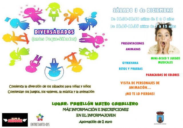 A partir de este sábado 3 de diciembre, y todos los sábados en adelante, los niños y niñas del municipio tienen una cita con los diversábados con juegos, talleres, música y animación en el Pabellón Mateo Caballero.