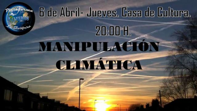El jueves, 6 de abril, la Casa de Cultura acoge una charla sobre la manipulación climática impartida por la Plataforma Salvemos la Biosfera. Con la colaboración de la concejalía de Medio Ambiente.