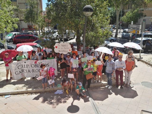 Unas cincuenta personas de Bullas se desplazaron ayer a Murcia para reivindicar a las puertas de la Consejería de Educación la reapertura de una línea de infantil en el Colegio Obispos García Ródenas el próximo curso y apoyar, así, a las seis familias de la localidad que se han quedado sin poder escolarizar a sus hijos en el centro.