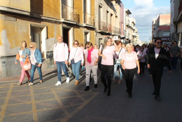 Poco después, a las 18:00 horas comenzó la marcha conjunta en la que participaron decenas de vecinos que siguieron hasta la Plaza de España donde formaron un lazo humano, simbolizando el lazo rosa del cáncer de mama. Acto seguido, tuvo lugar la charla a cargo del Oncólogo, David Collado. Con el auditorio de la Casa de Cultura lleno, los asistentes además de escuchar la voz del especialista pudieron conocer experiencias de personas que han padecido cáncer y lo han superado, coincidiendo la mayoría en que lo importante es la actitud a la hora de afrontar la enfermedad, la positividad y el humor. Humor que no faltó cuando para cerrar el acto prepararon desde la Junta local un sketch muy cómico.