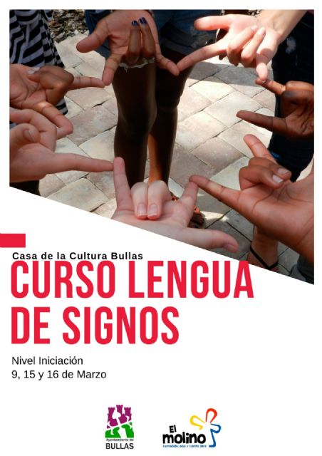 La Casa de Cultura acoge los días 9, 15 y 16 de marzo un curso de lengua de signos que imparte la Asociación El Molino con la colaboración de la Concejalía de Juventud del Ayuntamiento de Bullas.