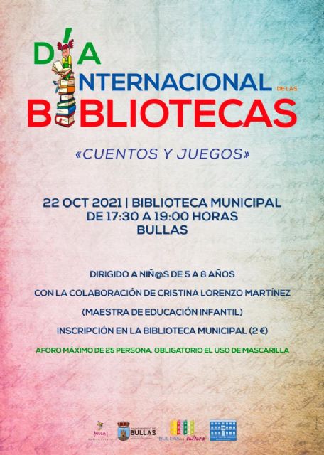 El 24 de octubre se celebra el Día Internacional de las Bibliotecas y, por tal motivo, la biblioteca municipal ha organizado un taller de cuentos y juegos dirigido a niños y niñas de 5 a 8 años.