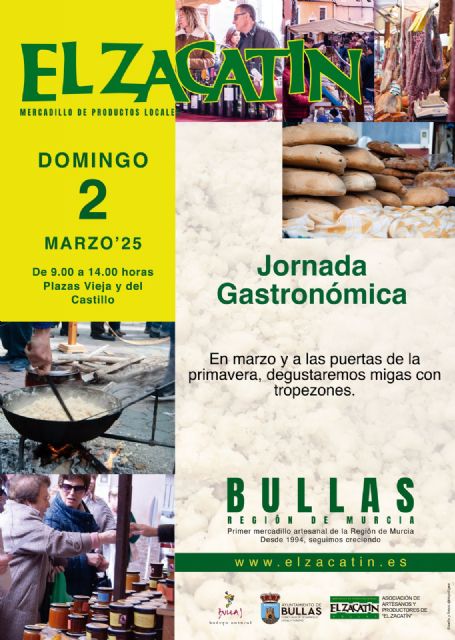 El próximo domingo, 2 de marzo, se celebra en Bullas el mercadillo 'El Zacatín' que transcurrirá de 9.00 a 14.00 horas en las plazas Vieja y del Castillo, así como en las calles aledañas.