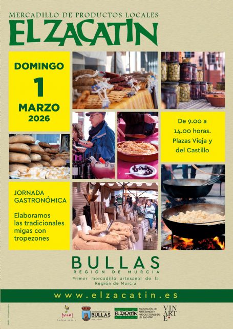 El próximo domingo, 1 de marzo, el mercadillo El Zacatín volverá a llenar de ambiente y tradición el centro de Bullas de 9 a 14 horas con una edición muy especial dedicada a las Jornadas Gastronómicas.