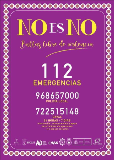 Con motivo de la celebración de las Fiestas de San Marcos, el Ayuntamiento de Bullas ha puesto en marcha la campaña "No es No. Bullas libre de violencia", una iniciativa integral destinada a garantizar unas fiestas seguras, inclusivas y libres de cualquier tipo de violencia, especialmente las agresiones sexuales.