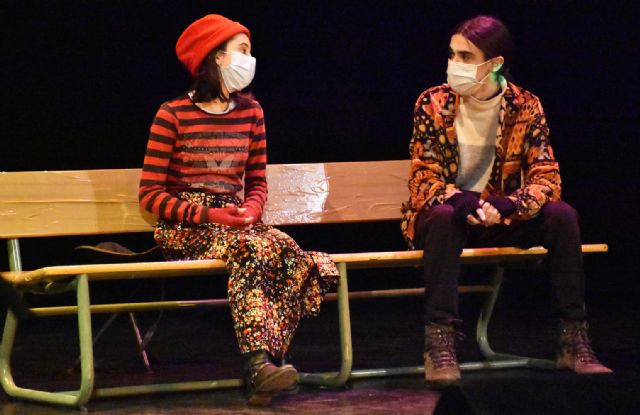 Las profesoras del IES Emilio Pérez Piñero Antonia Martínez Llorente y Dori Gómez López que dirigen el grupo de teatro han realizado un sobreesfuerzo durante este año para continuar con este proyecto a pesar de la situación sanitaria y las dificultades para garantizar las medidas higiénico sanitarias.