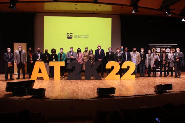La alcaldesa de Calasparra, Teresa García junto al concejal de Hacienda, Antonio J. Merino, asistieron ayer a la presentación de la Memoria 2021 de la Agencia Tributaria de la Región de Murcia realizada en el Auditorio Víctor Villegas de Murcia.