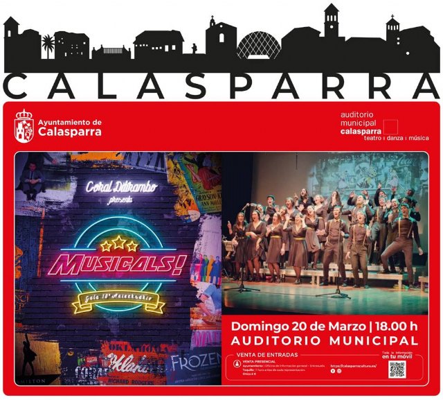 La Coral Ditirambo lleva diez años disfrutando de la música, rindiendo homenaje a grandes musicales de la historia y viene a Calasparra este domingo 20 de marzo de celebración, en su décimo aniversario se suben al escenario del Auditorio Municipal a presentarnos: Musicals! En 2011 fue cuando los miembros de Ditirambo comenzaron una nueva etapa en la que, bajo la dirección de José Ángel Silva, apostaron por un novedoso proyecto centrado en la exploración de la música coral dentro del género del teatro musical.
