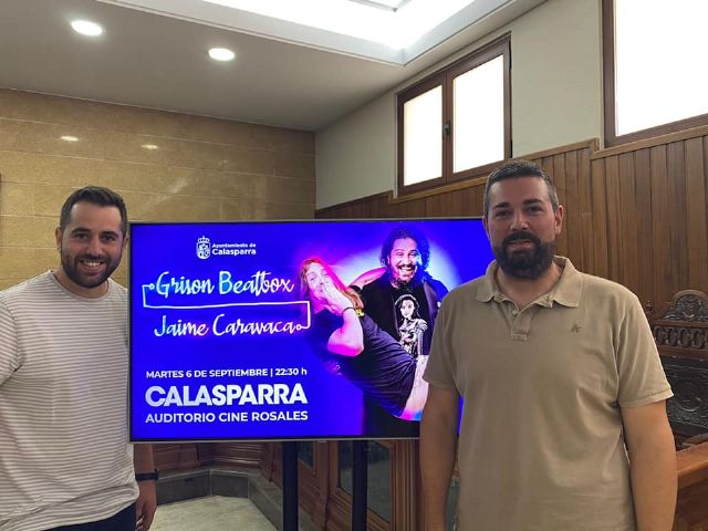 Grison Beatbox y Jaime Caravaca serán los encargados de clausurar el ciclo de comedia y humor de Calasparra el próximo martes 6 de Septiembre (22,30 h) con un extraordinario espectáculo que mezcla comedia y beatboxing (percusión vocal) en un ambiente participativo y con mucha improvisación. Una cita con los mejores monólogos de Jaime Caravaca (La Resistencia o Late Motiv), escenas conjuntas, doblaje en directo, canciones imposibles de Grison con un insuperable beatbox y su inseparable loopstation…