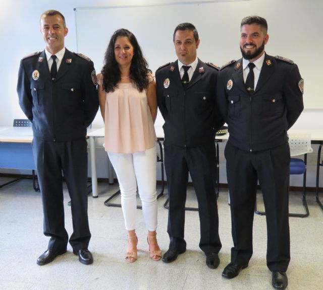 Los agentes del cuerpo de Policía Local de Campos del Río; Francisco Durán López, Sergio David San Bartolomé Oller, Antonio Palazón García y Antonio José Alfonso Barquero han sido reconocidos tras superar satisfactoriamente el intenso curso selectivo de formación para aspirantes a agentes de Policía Local que consta de 276 horas y prácticas de tiro junto a las Policías Locales de Murcia y Cartagena. Impartido por la Escuela de Formación e Innovación de la Administración Pública, este importante e imprescindible título convierte a los auxiliares de Campos del Río en agentes de pleno derecho del cuerpo de la Policía Local siendo nombrados funcionarios municipales de carrera.