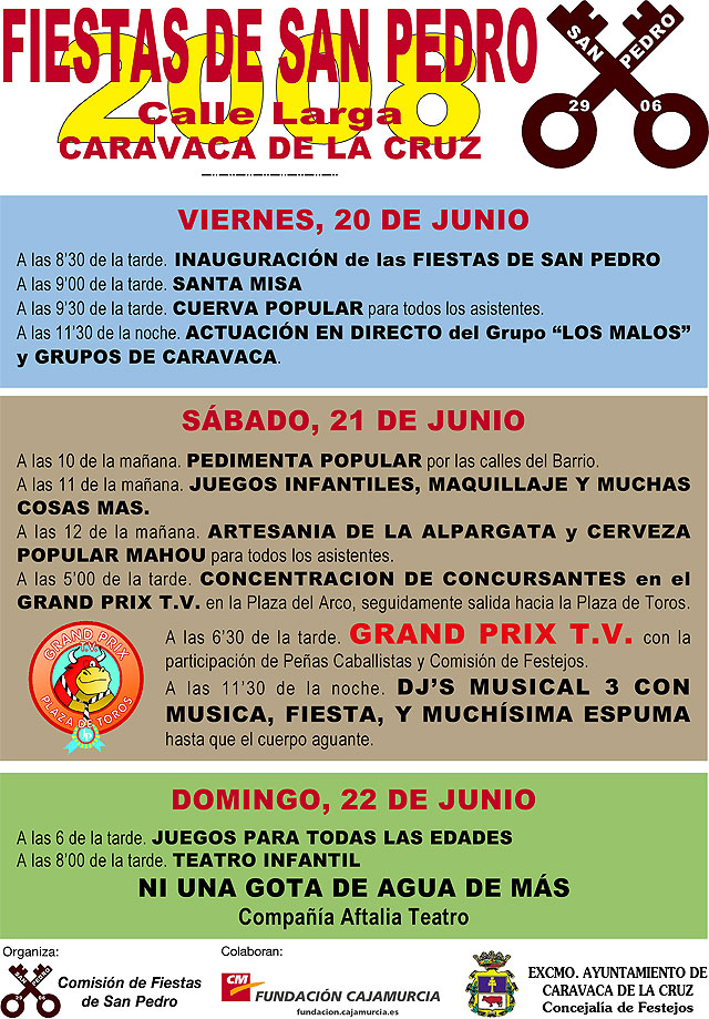 20:30 h. Acto de inauguración de las Fiestas de San Pedro 2008 con la asistencia de autoridades municipales, la comisión de fiestas y los vecinos de la calle Larga.
