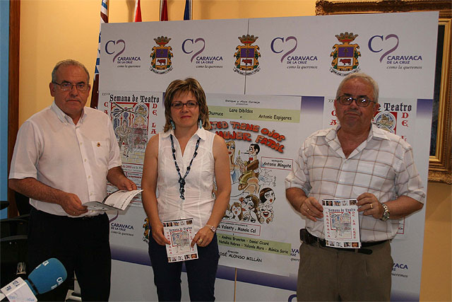 El alcalde de Caravaca, Domingo Aranda, y la concejal de Cultura, Mª Cruz Pérez, han presentado hoy el cartel de la Semana de Teatro de Caravaca de la Cruz, uno de los festivales de este género del arte escénico más antiguos de España, que en su XXVIII edición viene marcado por la comedia. Siguiendo la línea de los últimos años, la Plaza de Toros será el escenario de las cinco obras seleccionadas y de las dos representaciones infantiles que se pondrán en escena del 21 al 27 de julio.