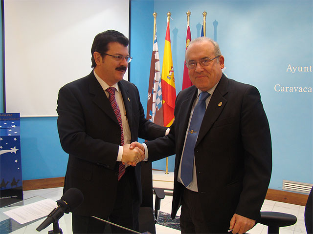 El alcalde de Caravaca, Domingo Aranda y el director de la Vuelta Ciclista a la Región de Murcia, Francisco Guzmán, han firmado esta mañana el convenio de colaboración para que Caravaca de sea final de etapa de la edición número 29 de la Vuelta.