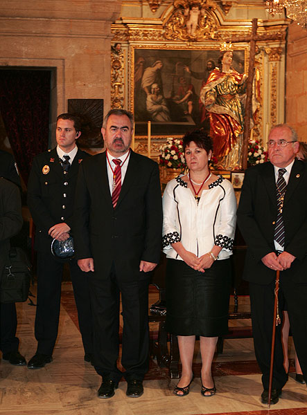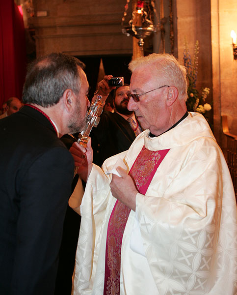 El delegado del Gobierno, Rafael González Tovar, en la ceremonia de imposición de la insignia de cofrade por parte de la Cofradía de la Hermandad de la Vera Cruz.