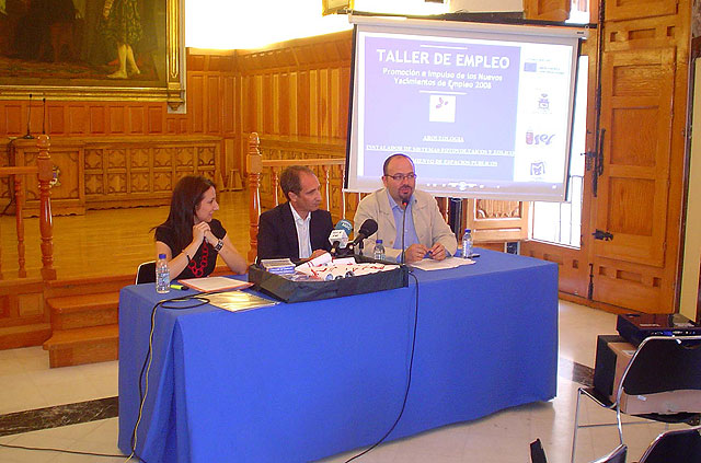 El director general del Servicio Regional de Empleo y Formación (SEF), Ginés Martínez, y el concejal de Empleo del Ayuntamiento de Caravaca, Salvador Gómez, han clausurado los talleres “Promoción e impulso de los nuevos yacimientos de empleo”. A estos talleres, divididos en las especialidades de arqueología, instalación de placas fotovoltaicas y mantenimiento de espacios públicos, han asistido durante un año un total de 24 desempleados. Tanto el director de SEF como el concejal de Empleo han destacado durante el acto de clausura que en el contexto actual de crisis económica es importante fomentar nuevos yacimientos de empleo a través de una formación profesional de calidad que alterna enseñanza teórica y práctica. Salvador Gómez ha adelantado que el Ayuntamiento de Caravaca ha presentado proyectos a nuevas convocatorias de talleres de empleo.