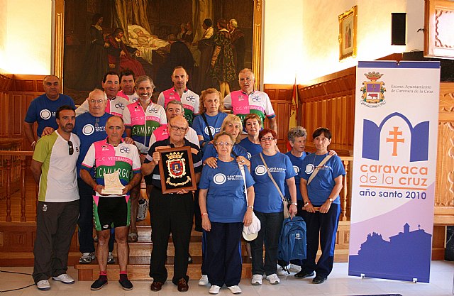 Un grupo de ciclistas ha completado esta mañana el recorrido de 943 kilómetros que une el municipio cántabro de Camargo con Caravaca de la Cruz, cumpliendo así la promesa realizada en el Año Santo de 2003 de regresar a la ciudad en el próximo Jubileo. Los componentes del Club de Cicloturistas Veteranos de Camargo han sido recibidos en el Salón de Plenos del Ayuntamiento por el teniente de alcalde, Amador López, quién les ha agradecido el enorme esfuerzo realizado para llegar a Caravaca y les ha hecho entrega de un recuerdo y material turístico. Los ciclistas, por su parte, le han entregado obsequios y cartas de los alcaldes de Santander y Camargo, en las que muestran su apoyo al Año Santo 2010.