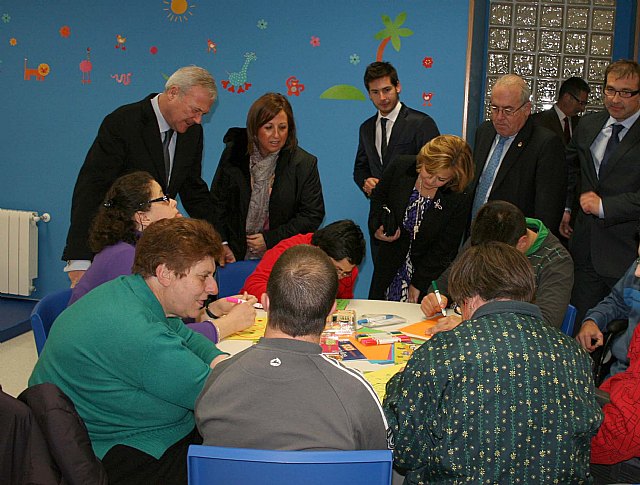 El jefe del Ejecutivo murciano, acompañado por el alcalde de Caravaca, Domingo Aranda, el consejero de Política Social, Joaquín Bascuñana, y el presidente de APCOM, Antonio Díaz, recorrió las nuevas instalaciones, en las que los usuarios recibirán en la Residencia una completa atención en cuanto a su alojamiento y manutención, así como en el desarrollo de programas y actividades a través del Centro de Día.