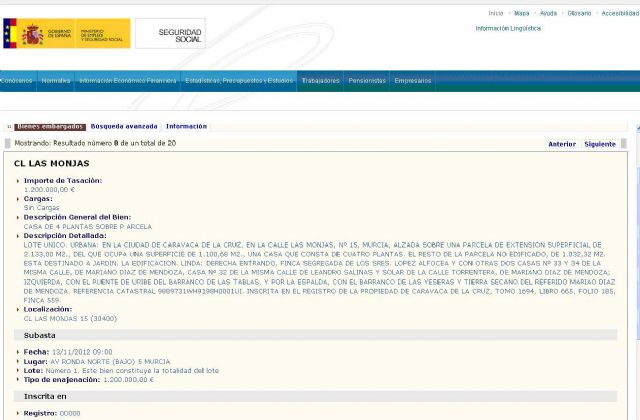 Esto es lo que ha colmado el vaso, manifiestan desde las filas socialistas, nada más conocer por casualidad que la deuda de Caravaca Jubilar va a suponer la pérdida, si nada lo remedia, de un impresionante edificio que fue el Palacio de los Uribe, ahora museo de la Fiesta, propiedad y sede de Caravaca Jubilar, con mas de 1.500 m2 edificados, sobre una parcela de unos 2.000 m2, todo perfectamente restaurado y que el próximo mes sale a subasta pública por los reiterados impagos a la Seguridad Social desde el año 2009.A día de hoy, este edificio tiene 5 embargos por valor total de 875.000 €, según consta en el Registro de la Propiedad de Caravaca, tres son de la Seguridad Social, uno de Hacienda y otro presentado por el que fuera Presidente del Caravaca, en segunda B.