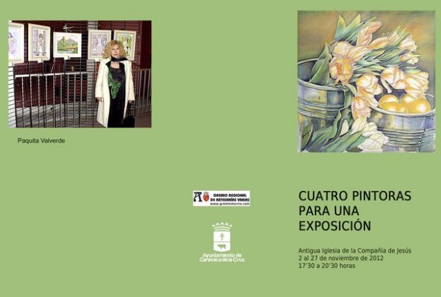 "Cuatro pintoras para una exposición" es la nueva muestra pictórica que desde hoy y hasta el próximo 27 de noviembre acoge la sala de exposiciones de la Compañía de Jesús. En esta exposición colectiva, organizada por el Gremio Regional de Artesanías Varias con la colaboración de la Concejalía de Cultura del Ayuntamiento de Caravaca, participan las artistas Ana María Almagro y Gloria Rodríguez, de Moratalla; Mari Carmen Pujante, de Molina de Segura, y Paquita Valverde, de Totana.