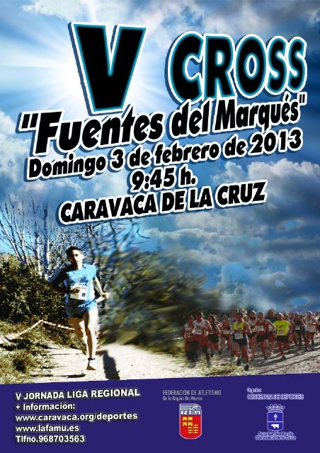 La Concejalía de Deportes del Ayuntamiento de Caravaca de la Cruz, en colaboración con la Federación de Atletismo de la Región de Murcia y la Asociación Deportiva Cruz de Caravaca, celebra el próximo domingo, 3 de febrero, a partir de las 10.00 horas el V Cross "Fuentes del Marqués". "Es una competición muy atractiva tanto para atletas federados como para los aficionados, ya que se vincula la práctica del deporte y el disfrute de la naturaleza en uno de los parajes naturales más bonitos de la Región de Murcia", ha destacado el edil Emilio Pérez.
