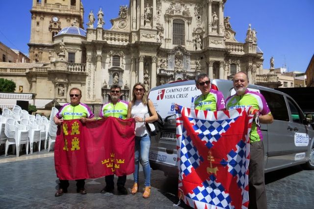 Abrir una vía de peregrinación por cerretera siguiendo el Camino de la Vera Cruz es el objetivo que se ha fijado un grupo de componentes de la Asociación de Amigos de la Bicicleta de Murcia (Bicimur), que durante estos días se encuentra realizando el recorrido que une Puente la Reina (Navarra) y Caravaca de la Cruz.