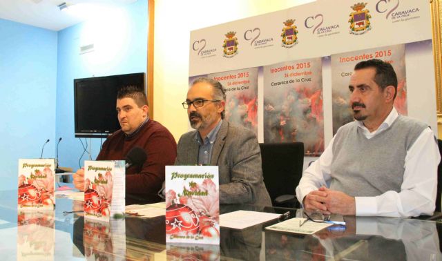 El alcalde, José Moreno, acompañado por el edil de Festejos y Cultura, Óscar Martínez, y el comisario de la fiesta, José Luis Robles, presentó esta actividad, que, según sus palabras, "cada año llena las calles de alegría y color, pero que destaca fundamentalmente por su carácter solidario". Así, Moreno apeló a la generosidad de los caravaqueños para apoyar la causa justa por la que los inocentes saldrán a la calle, que es la de financiar la silla de ruedas eléctrica que necesita Pedro José López López.