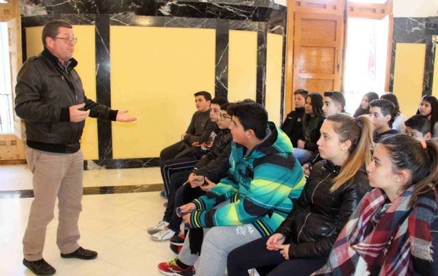 Cerca de 40 alumnos y alumnas del IES San Juan de la Cruz han visitado esta mañana el Ayuntamiento de Caravaca de la Cruz para conocer el funcionamiento democrático de la administración local y algunos de sus servicios de atención al ciudadano, como la Ventana Única, el registro o el Padrón.