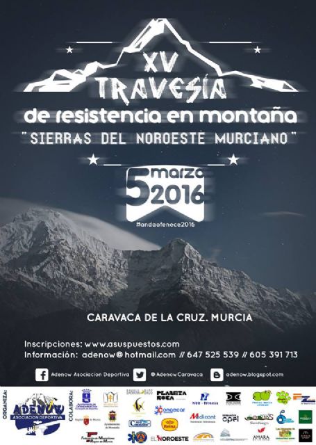 La Asociación Deportiva Adenow celebra el 5 de marzo la Travesía de Resistencia en Montaña 'Sierras del Noroeste Murciano', una prueba que ha sido presentada por el concejal de Deportes en el Ayuntamiento de Caravaca de la Cruz, Antonio Donate, y los miembros de la asociación, Alfonso Barreras y Alejandro Medina.