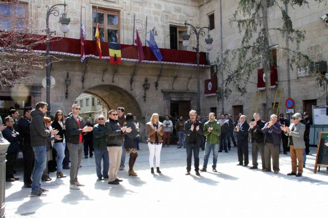 El Ayuntamiento de Caravaca de la Cruz se ha sumado este mediodía a las muestras de repulsa y condena por los atentados perpetrados en Bruselas, con un minuto de silencio en la Plaza del Arco, en el que han participado miembros de la Corporación, trabajadores municipales y un grupo de turistas belgas que hoy se encontraba visitando la ciudad.