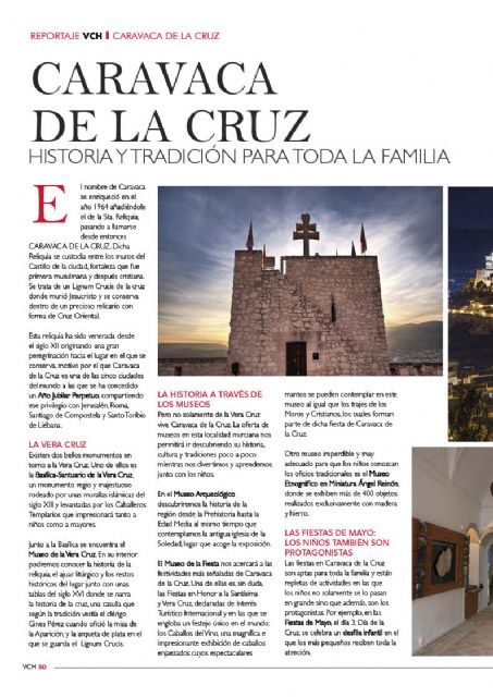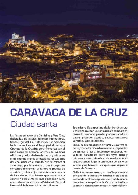 Por último, desde la Concejalía de Turismo también destacan la inclusión del cartel anunciador de las fiestas patronales y un reportaje sobre los atractivos turísticos de Caravaca de la Cruz en la guía 'Go!', que se distribuye en 500 puntos estratégicos de la Región de Murcia, como hoteles, museos, restaurantes o establecimientos comerciales.