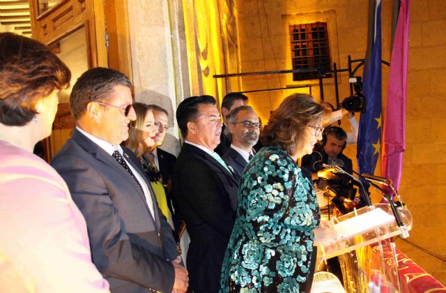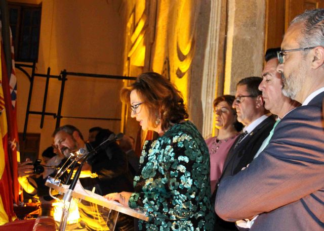 Ante una multitud de personas congregada en la Plaza del Arco, la pregonera ha destacado la gran implicación de los vecinos de Caravaca de la Cruz con los festejos que se celebran en torno a la patrona: "Nuestra fiesta es una fiesta viva que se desenvuelve sin complejos, con la participación de la gente como eje vertebrador de todo lo que se lleva a cabo".