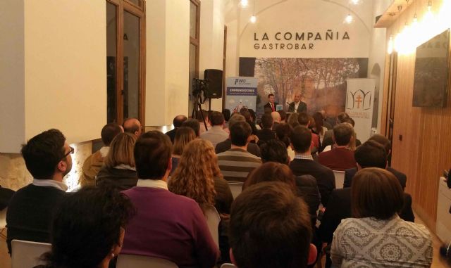 Más de 80 empresarios y emprendedores de la Comarca del Noroeste se dieron cita en el evento ‘La caña emprendedora 2.0’, promovido por el Instituto de Fomento de la Región de Murcia, con la colaboración del Ayuntamiento de Caravaca de la Cruz y el patrocino de Estrella Levante, Todopán y La Compañía Gastro Bar.