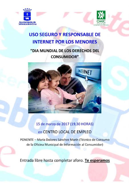 Con motivo del ´Día Mundial de los Derechos del Consumidor', la Concejalía de Comercio y Consumo del Ayuntamiento de Caravaca de la Cruz imparte este miércoles, 15 de marzo, la charla 'Uso seguro y responsable de Internet por los menores'.