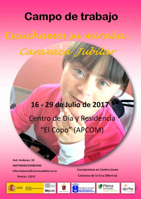 Caravaca de la Cruz acoge del 16 al 29 de julio el campo de trabajo 'Escuchamos su mirada. Año Jubilar 2017', organizado conjuntamente por el Ayuntamiento de Caravaca de la Cruz, la Dirección General de Juventud de la Región de Murcia y la Asociación de Familias de Personas con Discapacidad Intelectual del Noroeste APCOM.