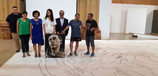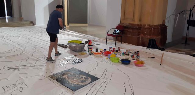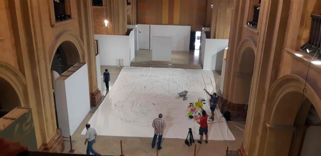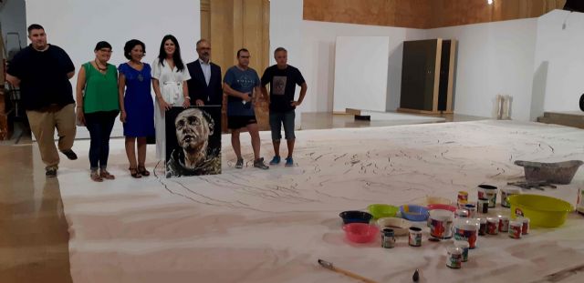 El artista andaluz, que actualmente reside en Berlín, está ejecutando en la propia sala de exposiciones esta obra, cuyas dimensiones son 14 metros de alto por 8 metros de ancho, siendo "el lienzo más grande de España y probablemente de Europa, ya que referencia suele ser el 'El juicio final' de Tintoretto, en Venecia, que mide cuatro metros menos", tal y como ha explicado el comisario de la exposición, Nacho Ruiz, en la visita que el alcalde de Caravaca de la Cruz, José Moreno; la consejera de Turismo y Cultura de la Comunidad Autónoma, Miriam Guardiola, y la hermana mayor de la Cofradía de la Vera Cruz, Mari Carmen López, han realizado a la sala, en el momento en que el artista comenzaba con la ejecución de la obra.