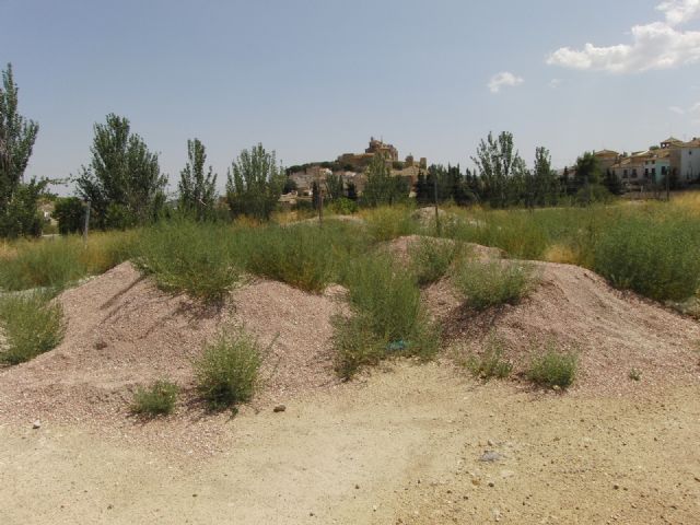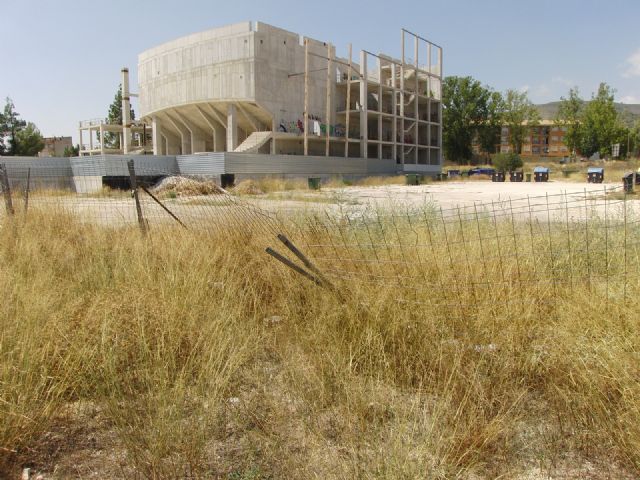 Exceptuando la estructura inconclusa del Auditorio (que tiene su propio vallado de chapa por seguridad), este lugar representa una amplia superficie libre, que no entendemos por qué estátambién vallada, de tal manera que solo queda una senda de paso,en malas condiciones, para ir hacia la Carretera de Moratalla o a los Barrios altos, así como al Puente Uribe.