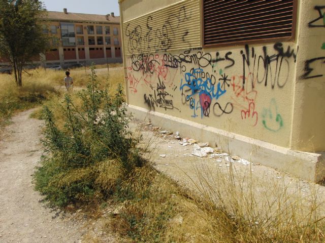 La maleza seca, los cristales rotos, restos de todo tipo de envases, de heces y basura en general, hacen que esta sea una zona insalubre y peligrosa.