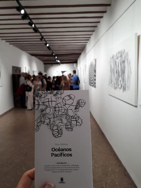 El caravaqueño Tomy Ceballos expone 'Océanos Pacíficos' en el claustro del antiguo convento de las Madres Carmelitas. La inauguración de la muestra, promovida por la Concejalía de Cultura del Ayuntamiento de Caravaca de la Cruz, contó con la presencia del alcalde, José Moreno, junto a familiares y amigos de este polivalente y autodidacta artista.