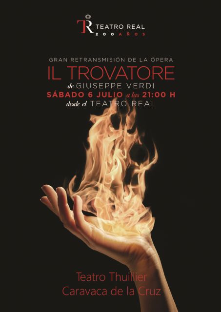 El Ayuntamiento de Caravaca de la Cruz, a través de su Concejalía de Cultura, se suma a la iniciativa promovida por el Teatro Real de Madrid dentro de la quinta edición de la 'Semana de la Ópera'. El teatro Thuillier será uno de los lugares de España donde se retransmitirá en directo 'Il Trovatore', de Giuseppe Verdi, este sábado, 6 de julio, a las 21.00 horas, con acceso gratuito hasta completar aforo.