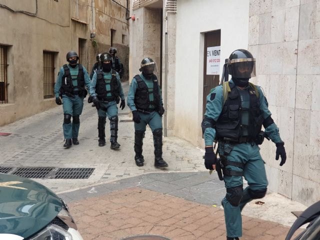 Una operación conjunta, dirigida por la Guardia Civil con el apoyo de la Policía Local de Caravaca de la Cruz, ha intervenido hoy en tres viviendas ocupadas del casco urbano, procediendo, por el momento, a la detención de tres personas como presuntos autores de una oleada de robos en domicilios y delitos contra la salud pública con tenencia y cultivo de sustancias estupefacientes.