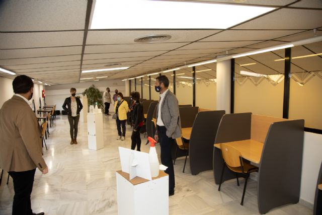 El alcalde, acompañado por el concejal de Cultura, ha visitado las instalaciones, que han renovado y acondicionado la zona de estudio, la Biblioteca, el Archivo Histórico Municipal, el aula de audiovisuales, espacio de consulta documental Miguel Espinosa y otras dependencias