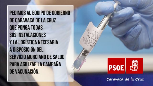 Solicitamos al equipo de Gobierno de Caravaca de la Cruz que ponga todas las instalaciones y la logística necesaria a disposición del Servicio Murciano de Salud para agilizar la campaña de vacunación.