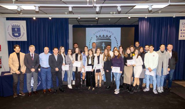 30/12/2022. El Ayuntamiento de Caravaca de la Cruz ha entregado sus Premios Extraordinarios de Educación correspondientes al curso académico 2021/2022 y las Becas de Movilidad Erasmus a un total de 19 jóvenes del municipio en un acto desarrollado en el salón de actos de la Casa de la Cultura 'Emilio Sáez'.